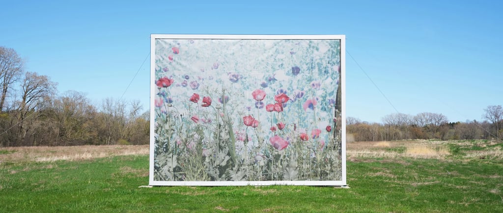 A artista frequentemente mistura elementos naturais e artificiais em suas imagens, como flores sintéticas inseridas em paisagens aparentemente naturais. Esse gesto sugere que a memória e o pertencimento também são construções: parte lembrança, parte imaginação, parte desejo. O lar, nesse contexto, não é apenas um lugar físico — é também algo que se cria.